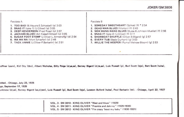 A1. Too Bad 3:03 A2. Snag It 3:05 A3. Deep Henderson 3:07 A4. Jackass Blues 3:05 A5. Sugar Foot Stomp 2:54 A6. Wa Wa Wa 2:48 A7. Tack Annie 2:51 B1. Someday Sweetheart 2:54 B2. Dead Man Blues 2:43 B3. New Wang Wang Blues 2:56 B4. Snag It (Take 2) 3:11 B5. Showboat Shuffle 2:57 B6. Every Tub 3:03 B7. Willie The Weeper 2:53