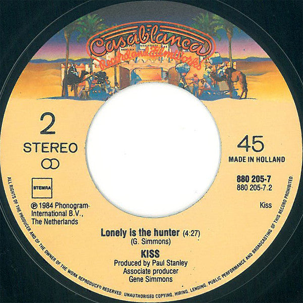 (℗ 1984 Phonogram International B.V., Netherlands Made in Holland Marketed by Phonogram Also released with different frontcover (Kiss-members on the picture). Runouts are stamped. In variant 2 it looks like the crossing out of "6" is done with "*"