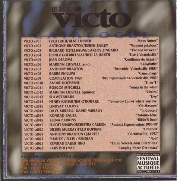 Recorded on 9 October 1992 live at the 10ième Festival International de Musique Actuelle de Victoriaville