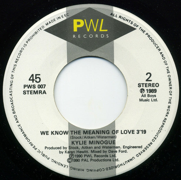 Recorded & Mixed at PWL Studios 1 & 4, London