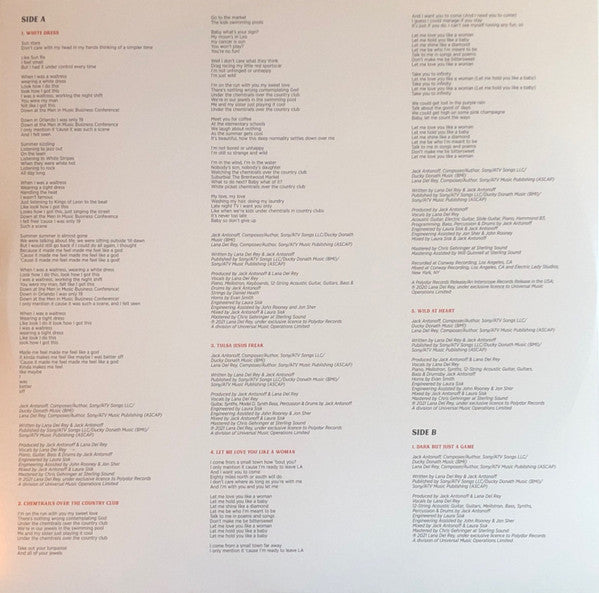 A Polydor Records Release / An Interscope Records Release In The U.S.A.: ℗ & © 2021 Lana Del Rey, under exclusive licence to Universal Music Operations Limited. Lacquer cut by credit and company derived from runouts JN-H STERLING Made in Poland printed on the shrink-wrap. Made in the EU on the back cover.