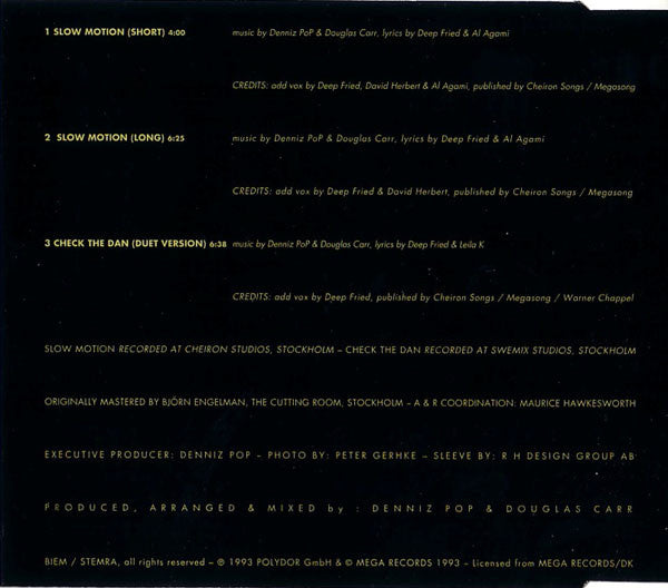 Slow Motion recorded at Cheiron Studios, Stockholm - Check The Dan recorded at Swemix Studios, Stockholm