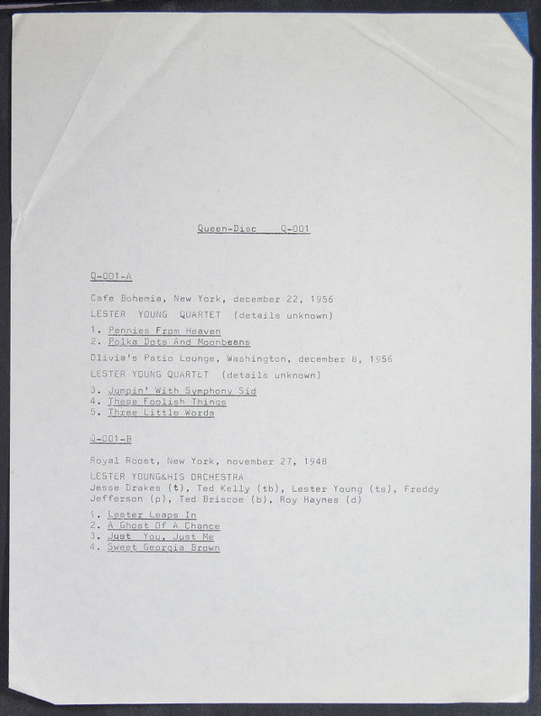 Jesse Drakes (t) Ted Kelly (tb) Lester Young (ts) Freddie Jefferson (p) Ted Briscoe (b) Roy Haynes (d)