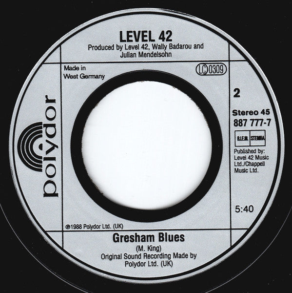 Track A: Taken from the forthcoming album '85268' Published by: Level 42 Music Ltd./Chappell Music Ltd./Rag Ruby Red Prod. Ltd./PolyGram Int. Music Publ. Inc. Track B: Published by: Level 42 Music Ltd./Chappell Music Ltd. ℗ 1988 Original sound recording made by Polydor Ltd. (UK) © 1988 Polydor Ltd. (UK) Made In West Germany