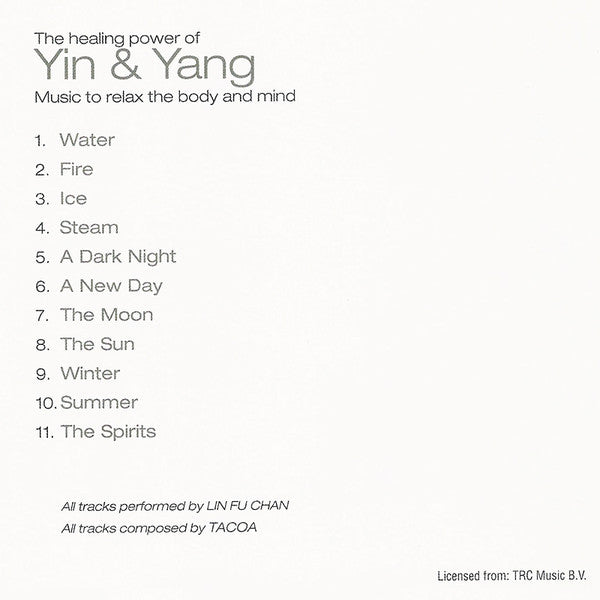1. Water 5:232. Fire 4:363. Ice 5:074. Steam 4:595. A Dark Night 4:546. A New Day 7:427. The Moon 5:318. The Sun 6:099. Winter 6:2910. Summer 6:0811. The Spirits 4:47