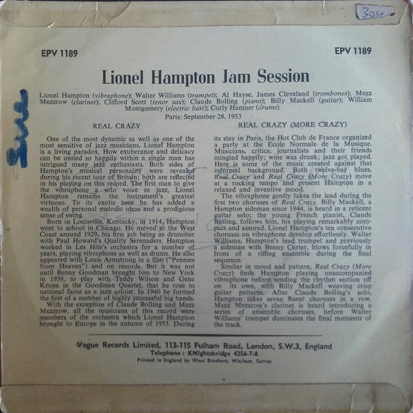 Recorded in Hot Club of France, Paris: September 28, 1953