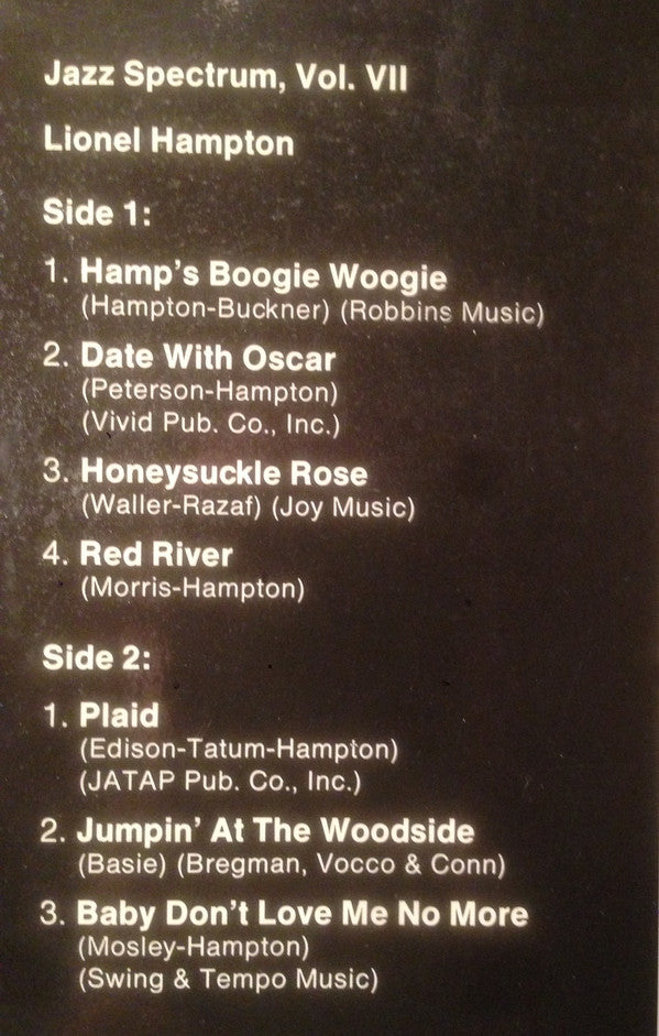 A1. Lionel Hampton Quintet - Hamp's Boogie Woogie 7:07 A2. Lionel Hampton Quintet - Date With Oscar 5:55 A3. Lionel Hampton Quintet - Honeysuckle Rose 2:35 A4. Lionel Hampton & His Big Band - Red River 3:13 B1. Lionel Hampton & His Giants Of Jazz - Plaid 6:35 B2. Lionel Hampton, Stan Getz - Jumpin' At The Woodside 8:25 B3. Lionel Hampton & His Big Band - Baby Don't Love Me No More 5:07