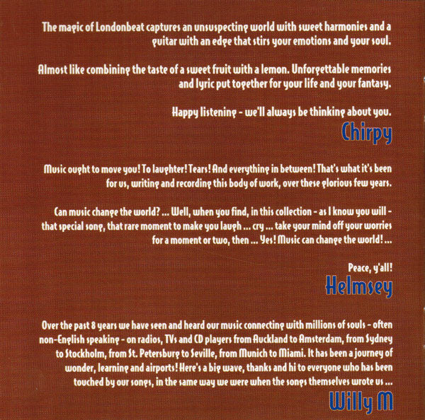 Tracks 1, 3, 7, 14 (P) 1990; tracks 2, 10, 11, 13 (P) 1992; tracks 4, 6, 8 (P) 1994; track 5 (P) 1991; tracks 9, 12, 15, 16 (P) 1988.