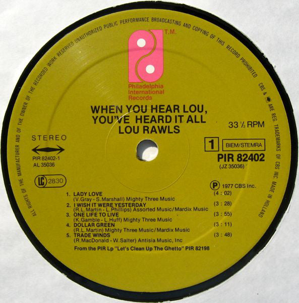 Track A5 is from the PIR album "Let's Clean Up The Ghetto" PIR 82198