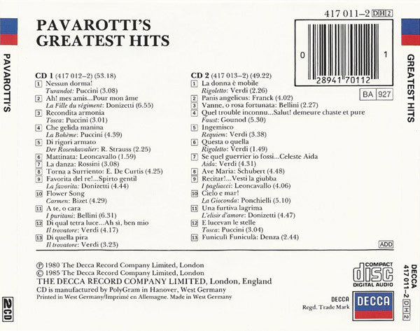 Luciano Pavarotti - Pavarotti's Greatest Hits (2xCD, Comp, RE, Fat)