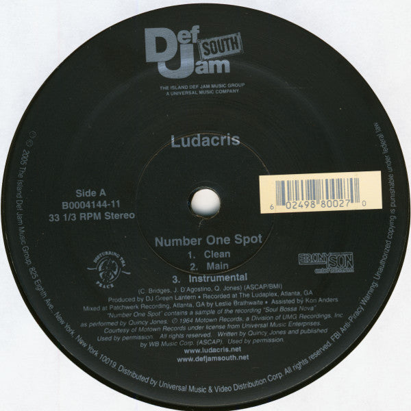 Side A recorded at The Ludaplex, Atlanta, GA and mixed at Patchwerk Recording [sic, Atlanta, GA.