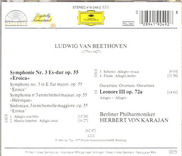Ludwig van Beethoven – Berliner Philharmoniker, Herbert von Karajan - Symphonie Nr. 3 “Eroica” / Ouverture “Leonore III” (CD, Comp, RM)