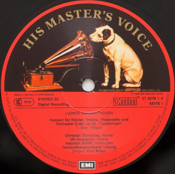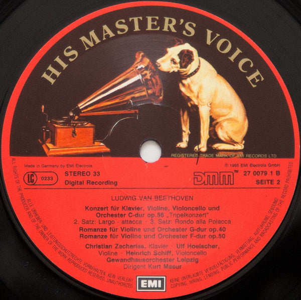 LUDWIG VAN BEETHOVEN • Triple Concerto • Violin Romances Nos. 1 & 2 • CHRISTIAN ZACHARIAS • ULF HOELSCHER • HEINRICH SCHIFF • KURT MASUR