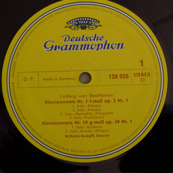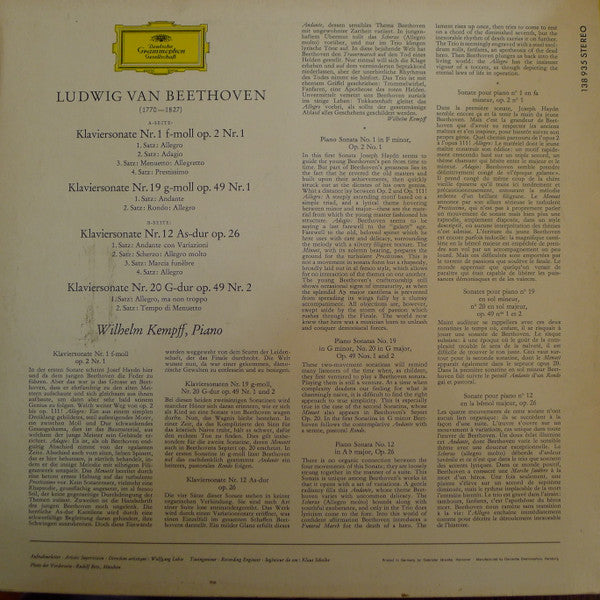 Ludwig van Beethoven, Wilhelm Kempff - Klaviersonaten Nr. 1 F-Moll · Nr 19. G-Moll · Nr. 12 As-Dur · Nr. 20 G-Dur (LP, RP)