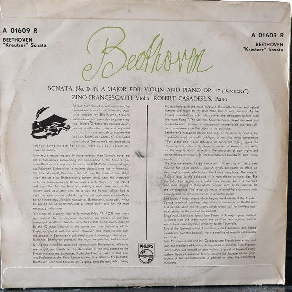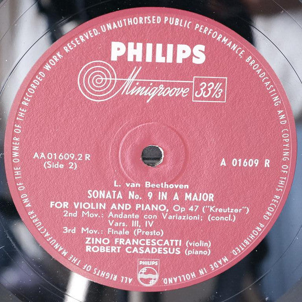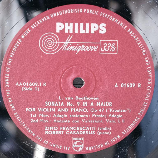 Ludwig Van Beethoven, Zino Francescatti, Robert Casadesus - Sonate A-Dur Op. 47 Für Violine Und Klavier "Kreutzersonate" (10")