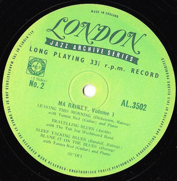 Ma Rainey - First Of The Great Blues Singers Volume 1 (10", Comp)