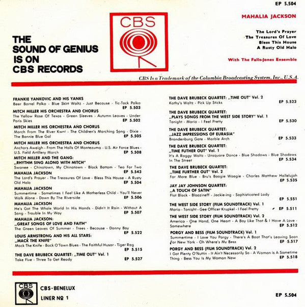 A1. The Lords Prayer A2. The Treasures Of Love B1. Bless This House B2. A Rusty Old Halo