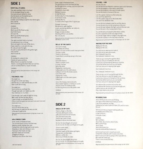 Released with lyrics sheet and first issues with two-sided poster (side 1: Album artwork and discography artwork, side 2: Tour map 1979 Germany plus written discography).