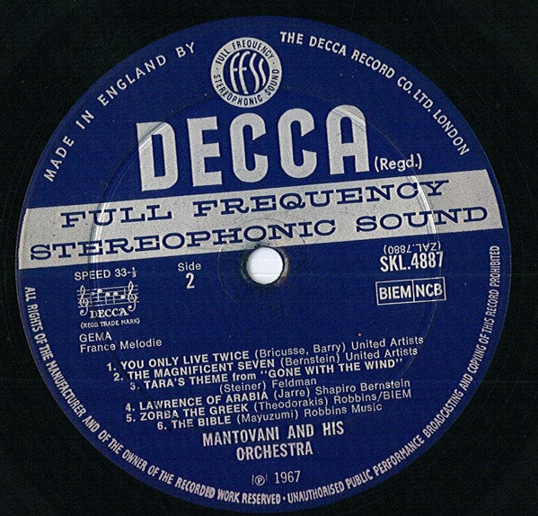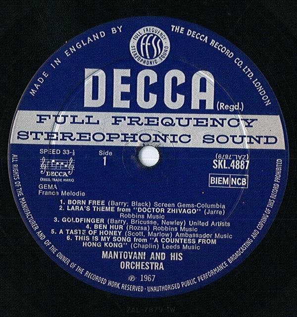 On the label the artist is credited as ''Mantovani And His Orchestra''.