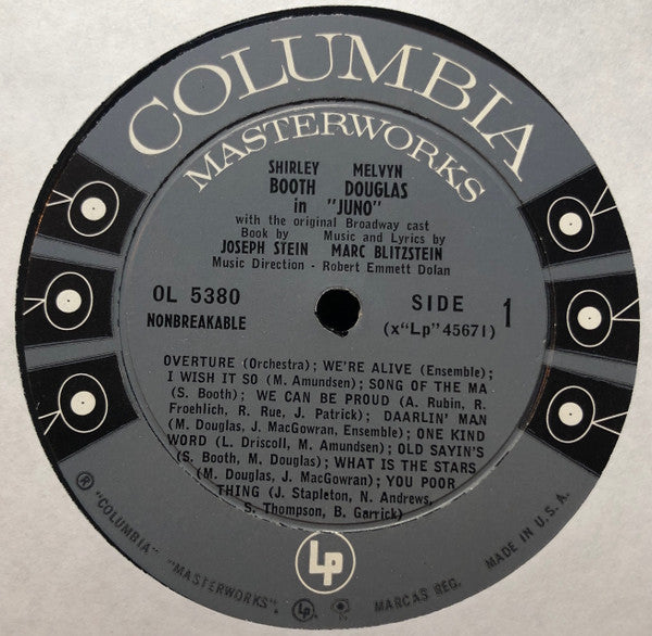 Original production presented by The Playwright's Company, Oliver Smith and Oliver Rea Based on "Juno and the Paycock" by Sean O'Casey Dances and Musical Numbers Staged by Agnes DeMille Production directed by Jose Ferrer 6 Eye label