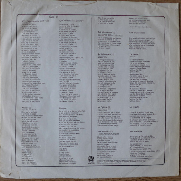 A1. Inici De Campana A2. Canço De Na Ruixa Mantells A3. Dona'm Sa Ma A4. Mercé A5. Petita Estança B1. Qué Volen Aquesta Gent B2. Alenar B3. Cel D'horabaixa B4. La Balanguera B5. La Petxina B6. Jota Marinera