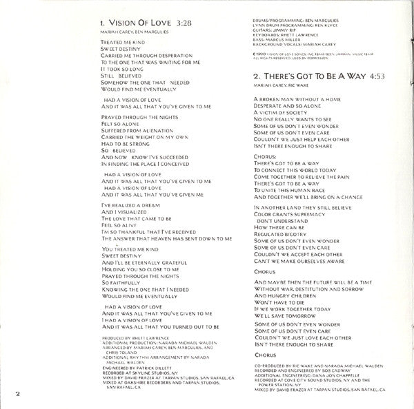Contains the No. 1 US smash hit "Vision Of Love" 01-466815-10