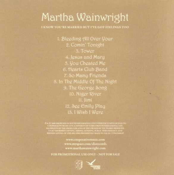 Martha Wainwright - I Know You're Married But I've Got Feelings Too (CD, Album, Promo, Car)