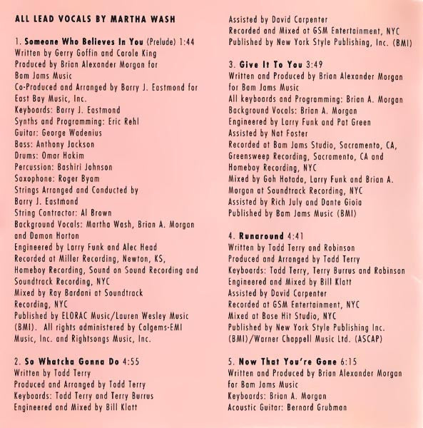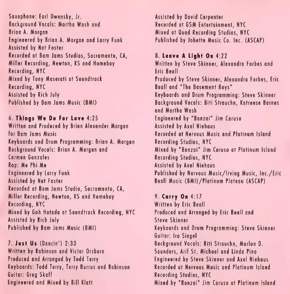 "Give It To You", "Now That You're Gone" and "Things We Do For Love" Published by Bam Jams Music (BMI). Written and produced for Bam Jams Music. Recorded at Bam Jams Studio, Sacramento, CA, Greensweep Recording, Sacramento, CA and Homeboy Recording, NYC. Mixed at Soundtrack Recording, NYC.
