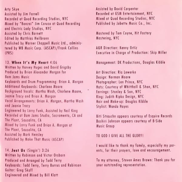 Just Us" and "Just Us (Singin')" Published by Jobette Music Co., Inc. (ASCAP). Recorded at GSM Entertainment, NYC. Mixed at Quad Recording Studios, NYC.