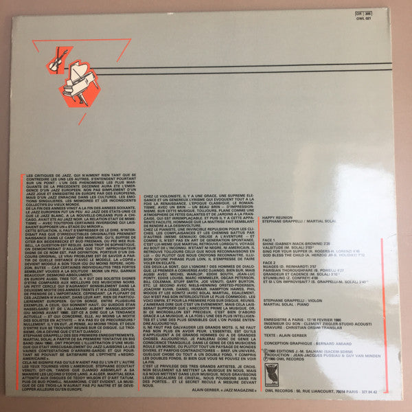 Martial Solal And Stéphane Grappelli - Happy Reunion (LP, Album)