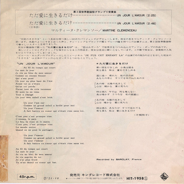 B. Un Jour L'Amour (In Japanese) = ただ愛に生きるだけ (日本語) 2:46