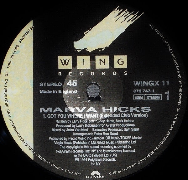 A. I Got You Where I Want B1. I Got You Where I Want (7" Version) B2. I Got You Where I Want (Instrumental)