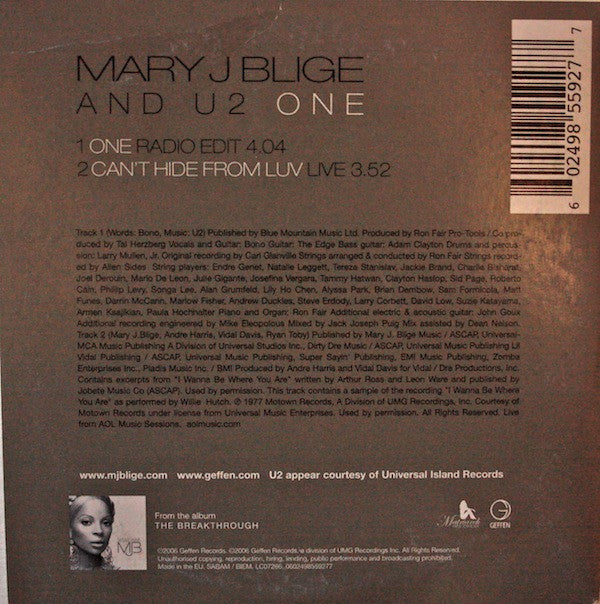 Mary J. Blige And U2 - One (CD, Single)