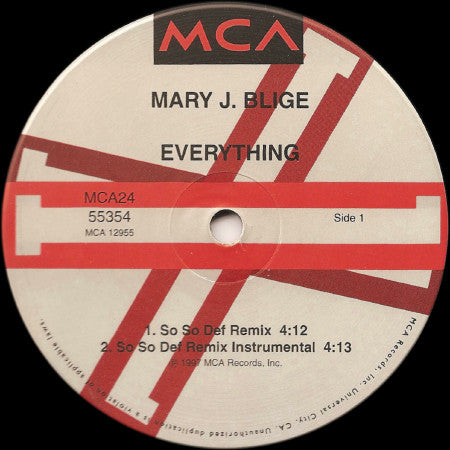 A1. Everything (So So Def Remix) 4:12 A2. Everything (So So Def Remix Instrumental) 4:13 B1. Everything (Malik's Remix) 4:05 B2. Everything (Malik's Remix Instrumental) 4:06 C1. Everything (I Don't Know What It Is But It Sure Is Funky) 4:53 C2. Everything (I Don't Know What It Is But It Sure Is Funky Instrumental) 4:52 D1. Everything (Classic Club) 9:23 D2. Everything (The Quiet Mix) 5:05
