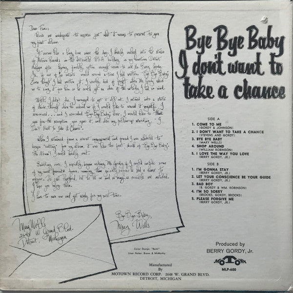 A1. Come To Me A2. I Don't Want To Take A Chance A3. Bye, Bye Baby A4. Shop Around A5. I Love The Way You Love B1. I'm Gonna Stay B2. Let Your Conscience Be Your Guide B3. Bad Boy B4. I'm So Sorry B5. Please Forgive Me