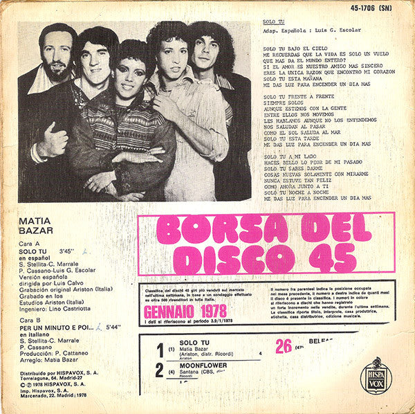 On label A: Canta en español. Versión original - N.º 1 en Italia. Versión española.