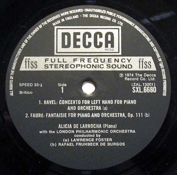 A1. Maurice Ravel, Alicia De Larrocha, The London Philharmonic Orchestra, Lawrence Foster - Concerto For Left Hand For Piano And Orchestra