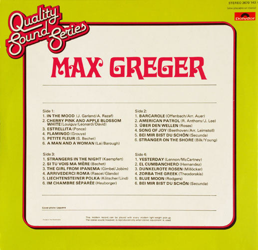 Max Greger - Max Greger (2xLP, Comp, RE)