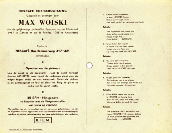 Max Woiski Sr. - Nescafé Coffeeboatsong (Flexi, 6", S/Sided, Mono, Card, Pic)