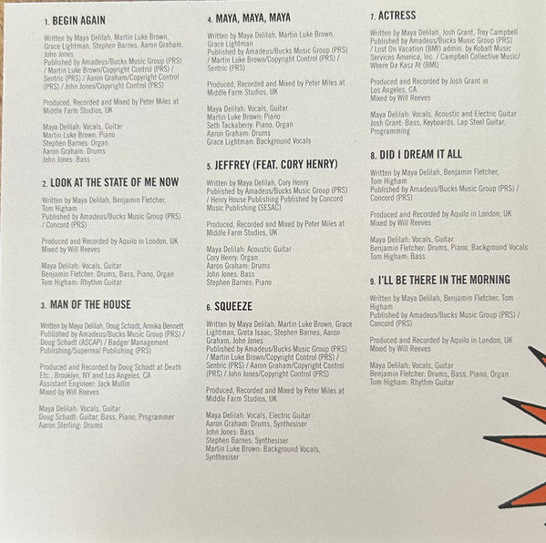 1. Begin Again 3:502. Look At The State Of Me Now 3:183. Man Of The House 3:384. Maya, Maya, Maya 3:005. Jeffrey (feat. Cory Henry) 4:566. Squeeze 3:557. Actress 3:598. Did I Dream It All 3:449. I'll Be There In The Morning 3:2110. My Balloon 2:2511. Necklace 3:3212. Never With You 5:43