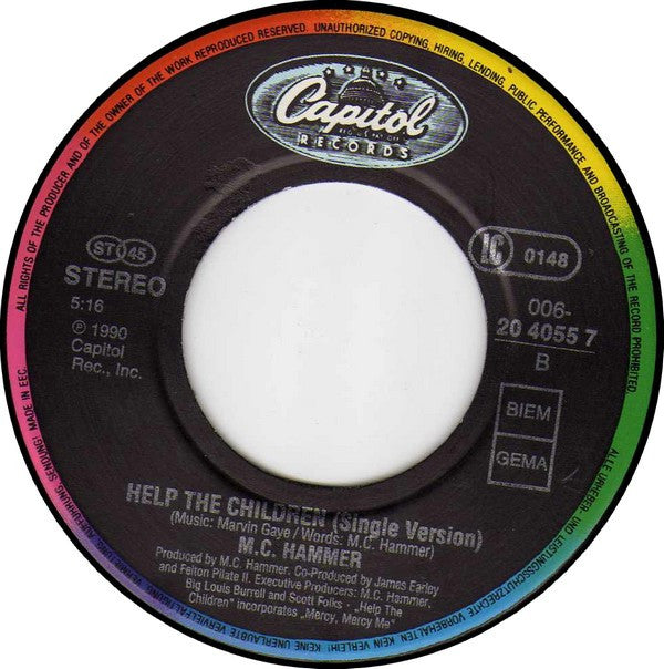 Artist is listed as "MC Hammer" on the sleeve and as "M.C. Hammer" on the center labels.