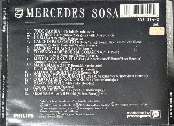 Mercedes Sosa - Gracias A La Vida (CD, Comp, RM)