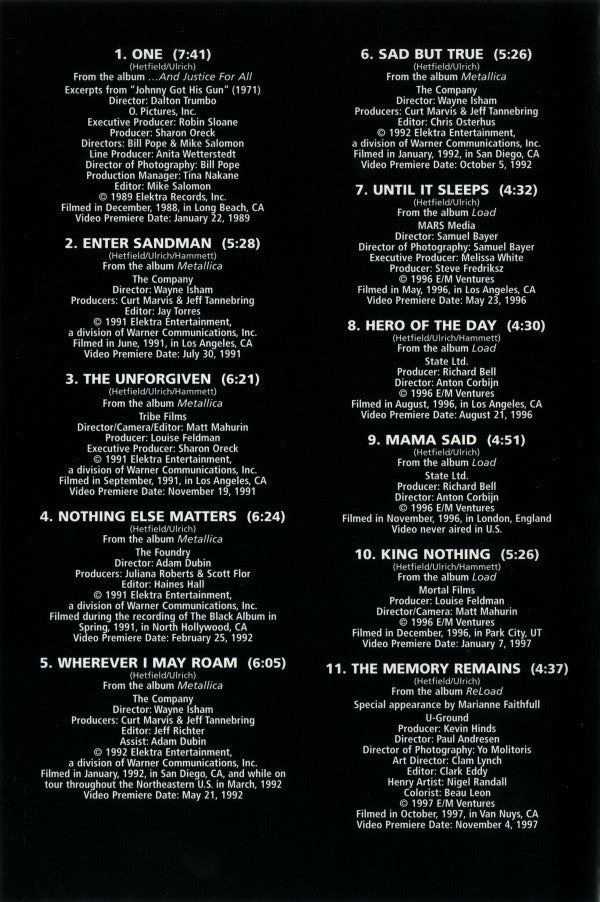The videos for tracks 18 to 21 show Robert Trujillo playing bass, however the songs were recorded with Bob Rock on bass.