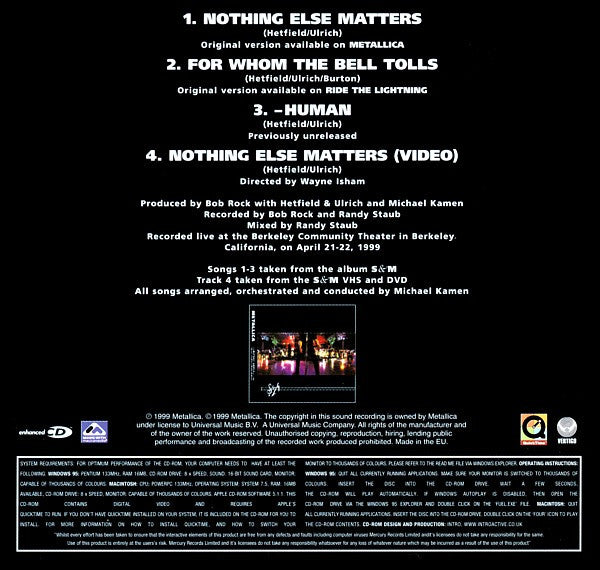 1. Nothing Else Matters 6:472. For Whom The Bell Tolls 4:523. - Human 4:19Video. Nothing Else Matters (Video)