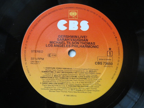 Michael Tilson Thomas, Sarah Vaughan, Los Angeles Philharmonic Orchestra - Gershwin Live! (LP, Album)