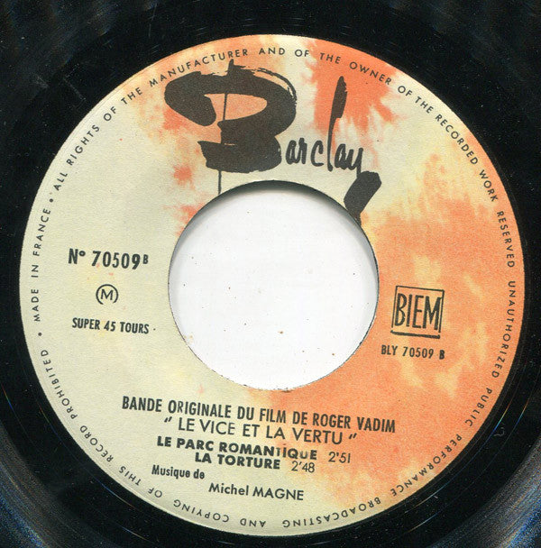 Full title on the cover: "Bande Originale du Film de Roger Vadim "Le Vice Et La Vertu"