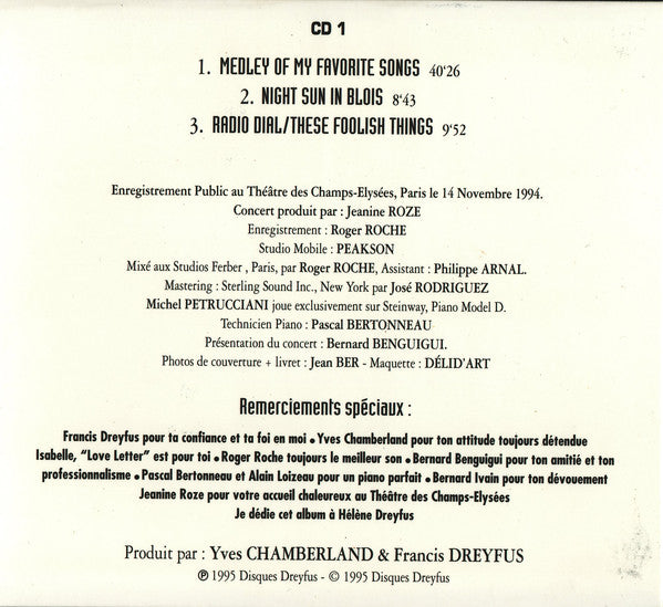 Recorded live at Théâtre des Champs-Elysées Paris on November 14, 1994.