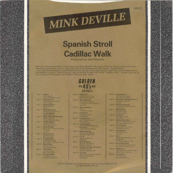 1984 release,part of EMI's 'Golden 45's'' series,coupling two 1977 track from New York Punk legends Mink DeVille.In picture sleeve.