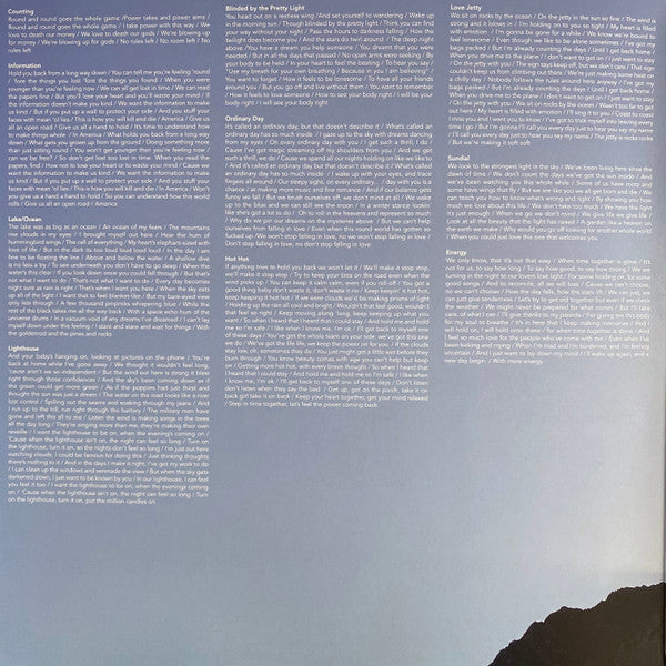 A1. Counting A2. Information A3. Lake/Ocean A4. Lighthouse A5. Blinded By The Pretty Light B1. Ordinary Day B2. Hot Hot B3. Love Jetty B4. Sundial B5. Energy