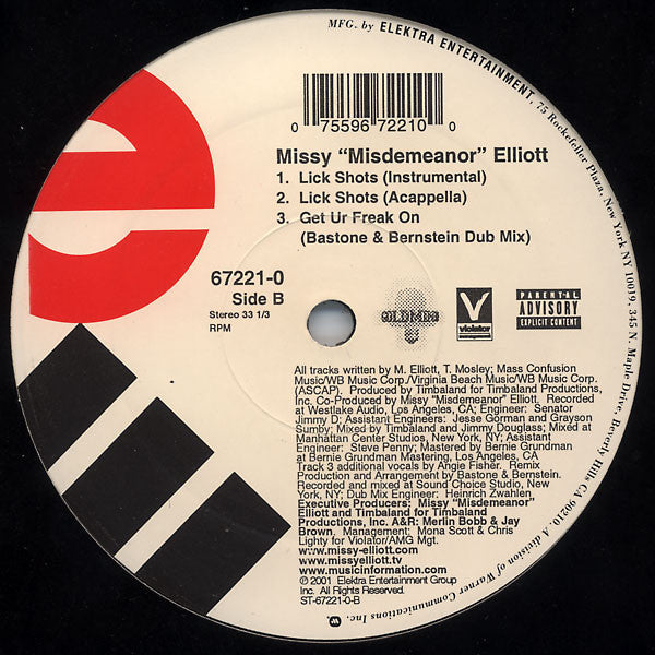 A1. Lick Shots (Original) A2. Get Ur Freak On (Bastone & Bernstein Club Mix) B1. Lick Shots (Instrumental) B2. Lick Shots (Acapella) B3. Get Ur Freak On (Bastone & Bernstein Dub Mix)